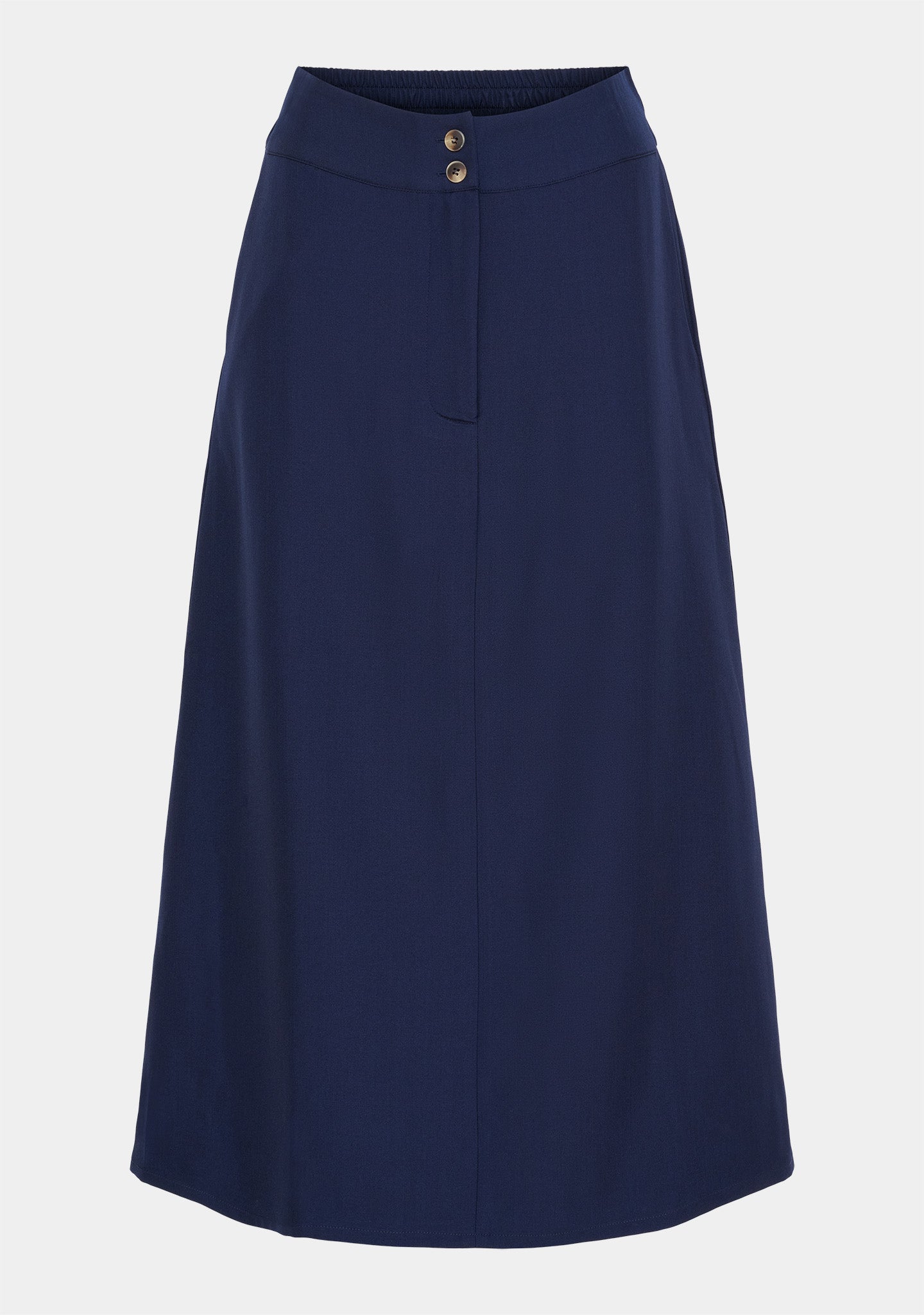 Der Liona Rock ist ein zeitloser Rock mit schlichtem und elegantem Design. Die hohe Taille mit festem Bund vorne und elastischem hinten sorgt für eine bequeme Passform, während die leichte A-Linie für einen schmeichelhaften Fall sorgt. Der Rock hat eine Midi-Länge, die ihn sowohl für den Alltag als auch für Partys geeignet macht. Hergestellt aus einer leichten und dehnbaren Polyestermischung mit Elasthan für Komfort, Bewegungsfreiheit und Formbeständigkeit.