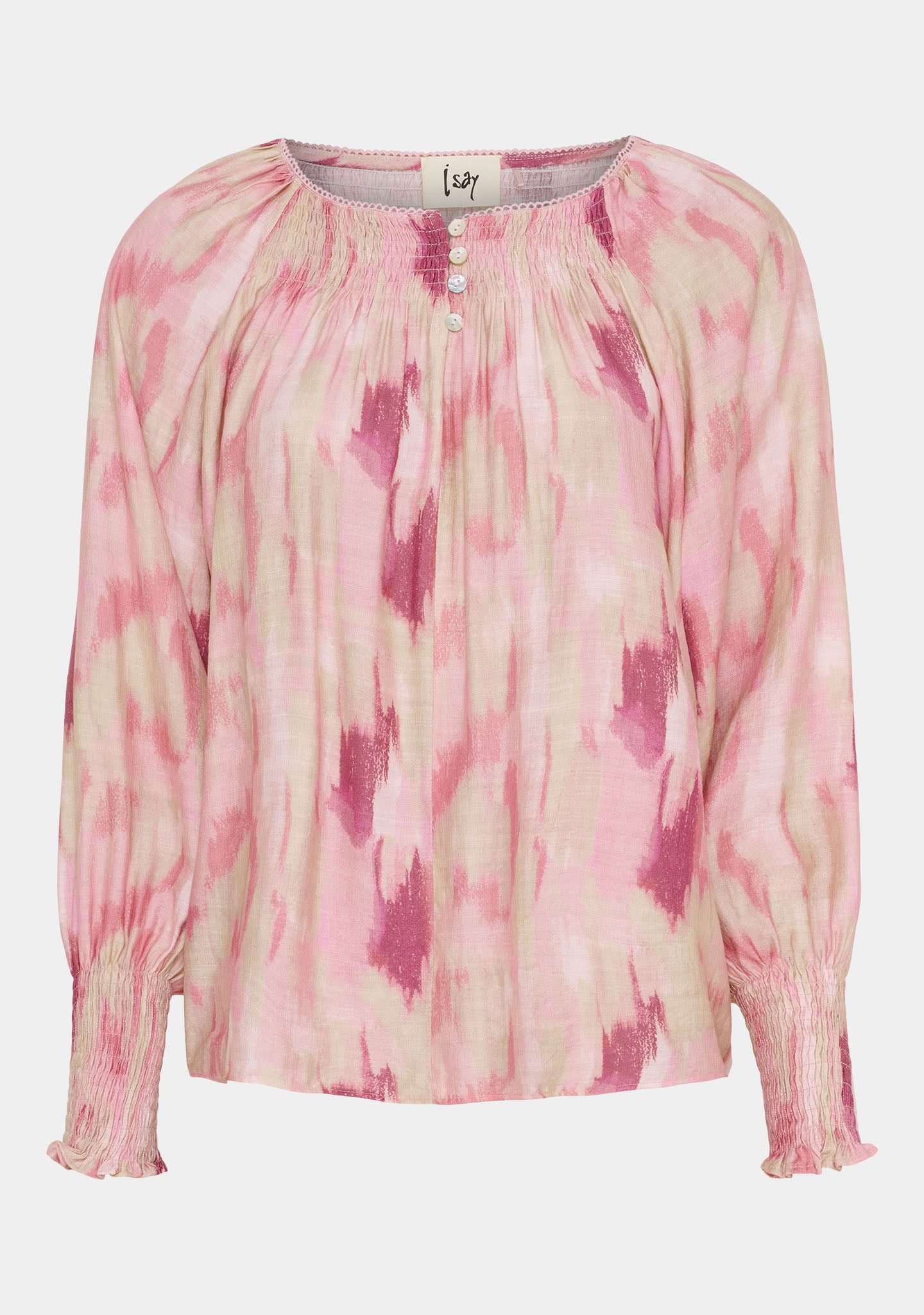 • Runder Hals mit Smock und Knöpfen vorne