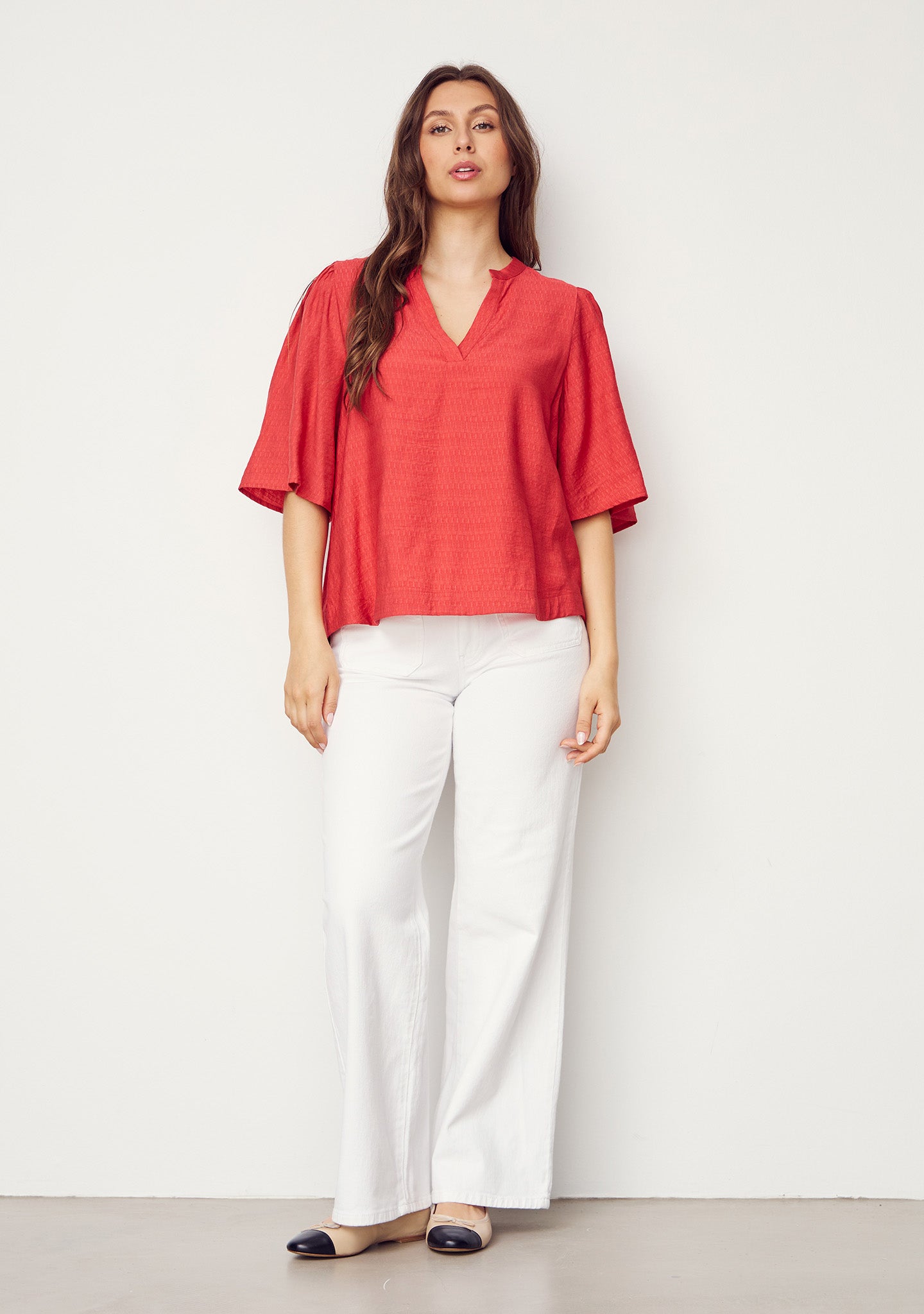 Die Ane s/s Bluse ist eine perfekte Wahl für Frauen, die einen eleganten, aber entspannten Stil wünschen. Die leichten, kurzen Ärmel und die schmeichelhafte Passform machen sie ideal für Arbeitstage und Freizeit.