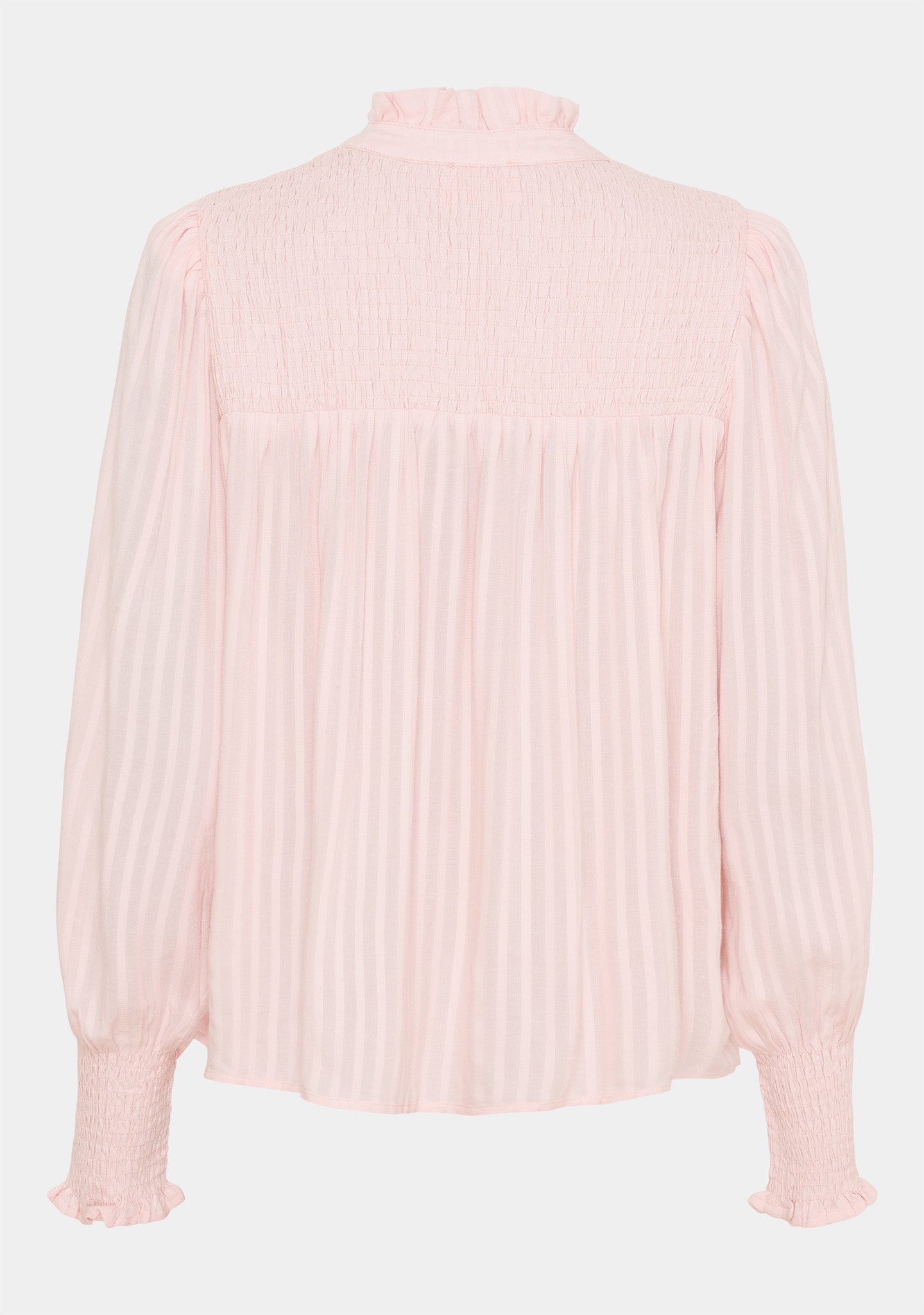 Die Lea Bluse ist eine feminine Bluse mit einem leichten und luftigen Ausdruck. Der lockere Schnitt sorgt für eine bequeme Silhouette, während der kleine Stehkragen und der V-Ausschnitt eine elegante Note hinzufügen. Das Rüschen-Detail oben bietet eine schöne Struktur, und die langen Ärmel sind mit Rüschen und einem leichten gewellten Rand versehen, der das feminine Design betont. Hergestellt aus einer weichen Viskosemischung mit leichter Struktur, die angenehm auf der Haut liegt und wunderschön am Körper fällt.