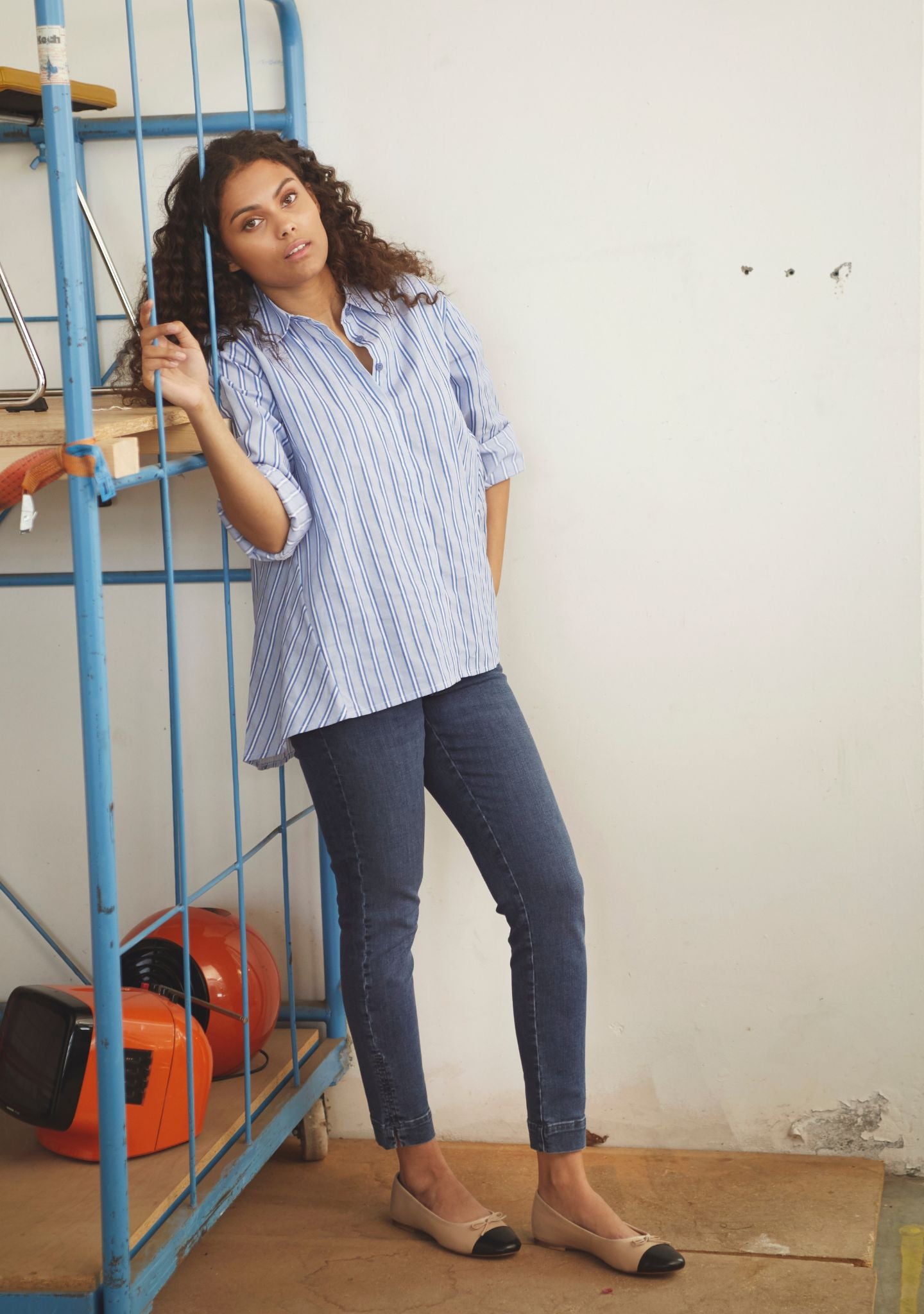 We've updated our well-known Bellis shirt and transformed it into a timeless classic with a twist. This shirt features long sleeves, a hidden button closure, buttoned cuffs, and a longer back. The Bellis New Shirt is made of 100% cotton and stands out with its A-line fit, creating a very flattering silhouette. This shirt pairs especially well with a pair of raw jeans to achieve a super cool look.