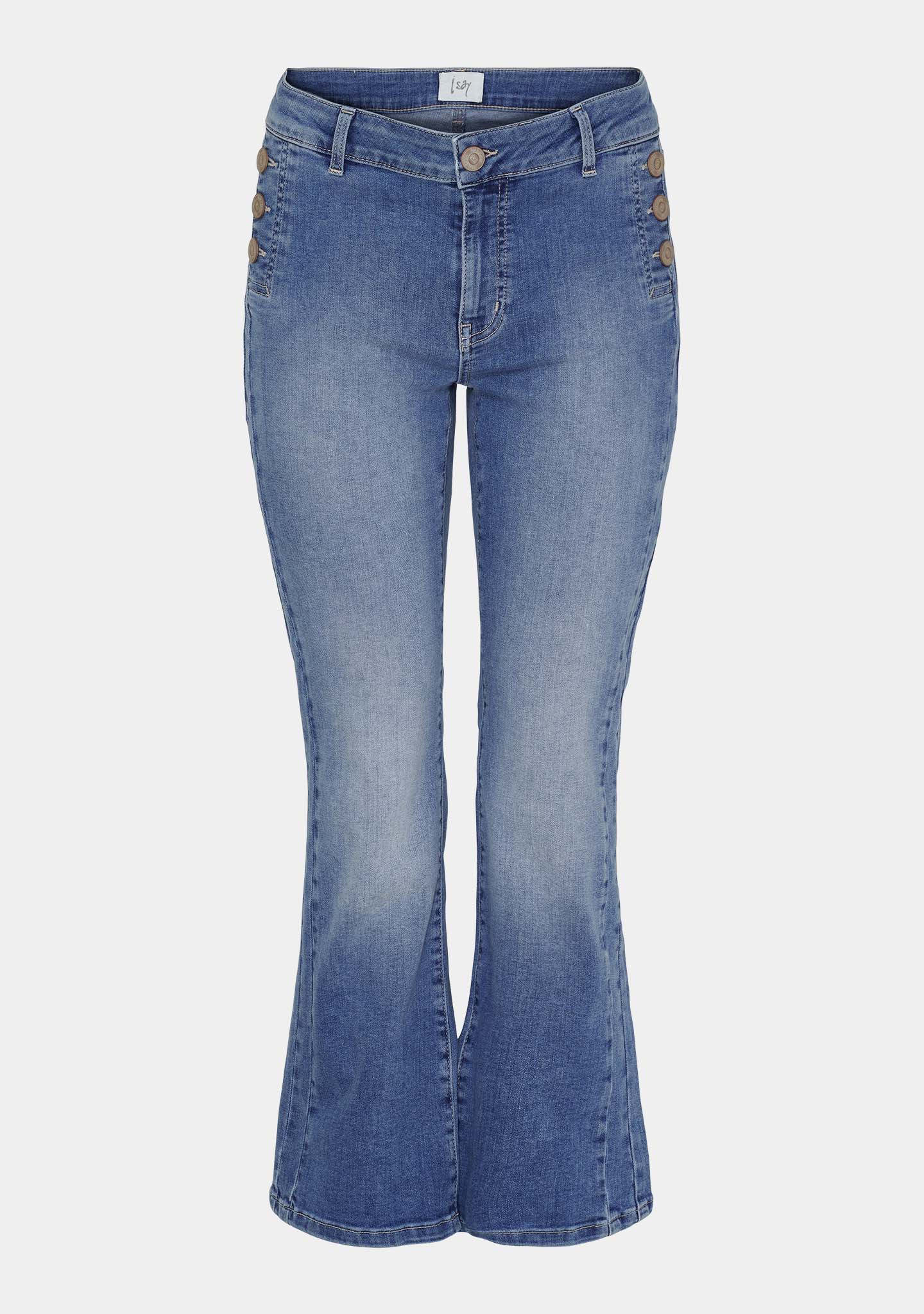 Como Button Jeans is the perfect choice for those who love elegant and unique jeans. These jeans have a beautiful design with delicate buttons on each side of the hip, providing a feminine touch. They also feature a trendy flare effect at the ankles, creating a flattering silhouette. Como Button Jeans are designed without front pockets, but with an extra seam on the outer side of each leg, adding an exciting element. They have a mid-rise waist and are made of stretchy fabric, offering a fantastic fit and comfort. Como Button Jeans are the kind of jeans you'll love to wear!