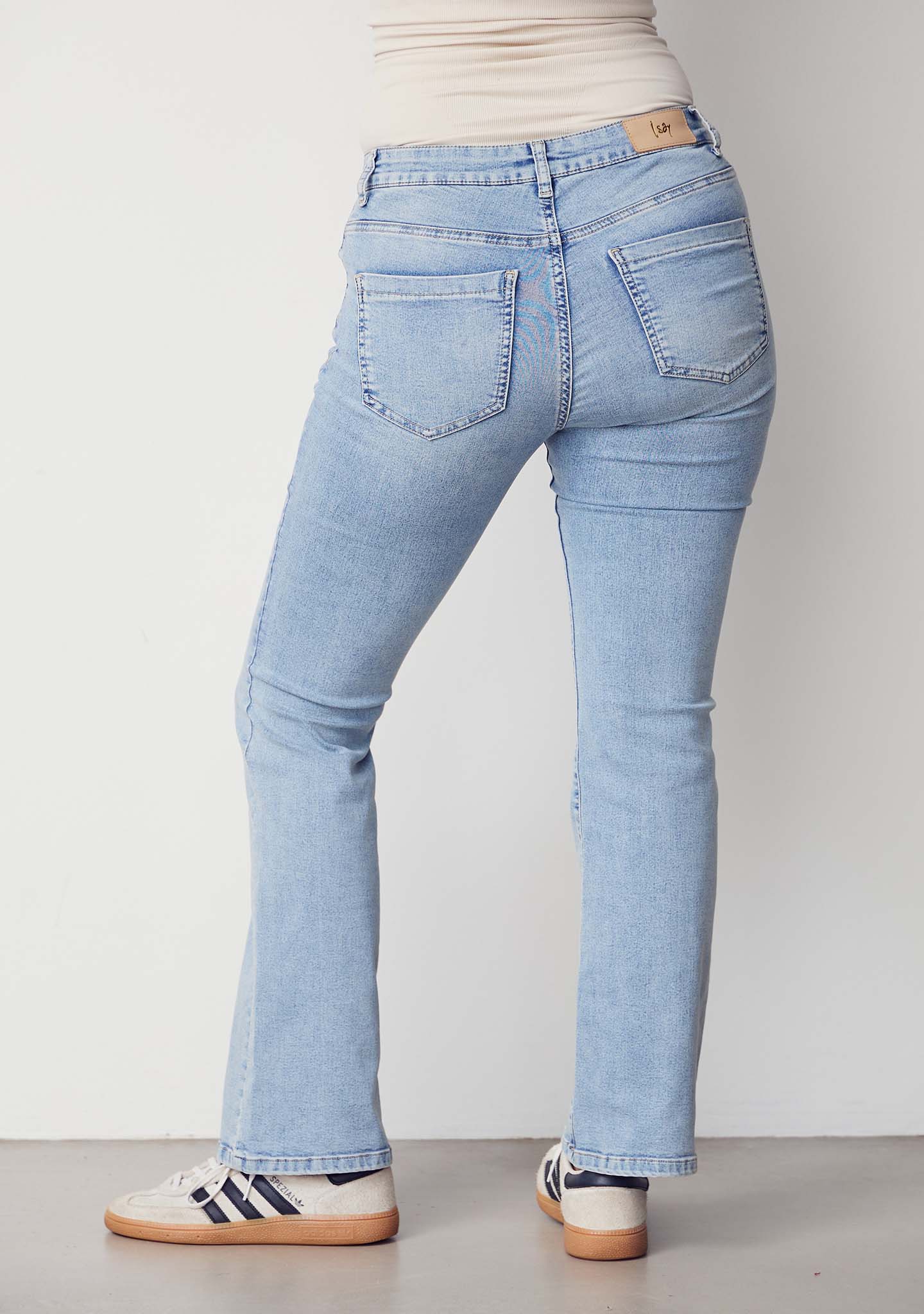 Die Lido Flare Jeans ist eine unserer meistverkauften Jeans. Die Lido Flare Jeans besteht aus Baumwolle mit Superstretch, was eine hervorragende Passform und außergewöhnlichen Komfort garantiert. Die Hosen haben eine ausgestellte Passform, die von den Knien bis zu den Beinenden breiter wird und einen schönen Effekt und einen coolen Look verleiht. Dies sind die idealen Jeans für Frauen, die eine mittelhohe Taille, einen ausgestellten Effekt an den Beinen, hoch sitzende Gesäßtaschen und eine lange Beinlänge suchen. Außerdem sind die Lido Flare Jeans aus unserem super dehnbaren Material gefertigt, das als Superstretch von I SAY bekannt ist. Probieren Sie heute noch unsere Lido Flare Jeans aus, und Sie werden schnell feststellen, dass Sie ein Paar Jeans fürs Leben haben, zu dem Sie immer zurückkehren werden.