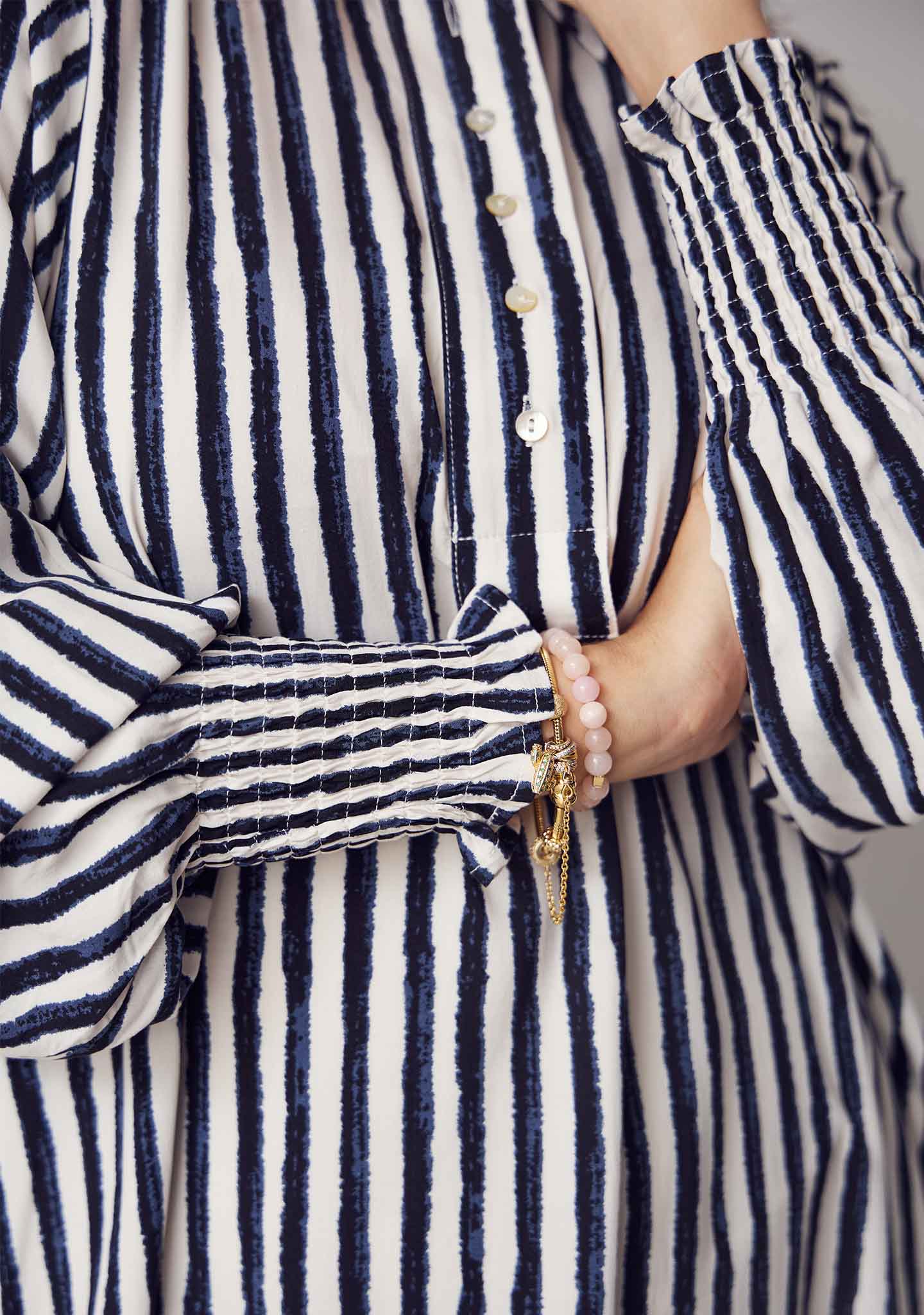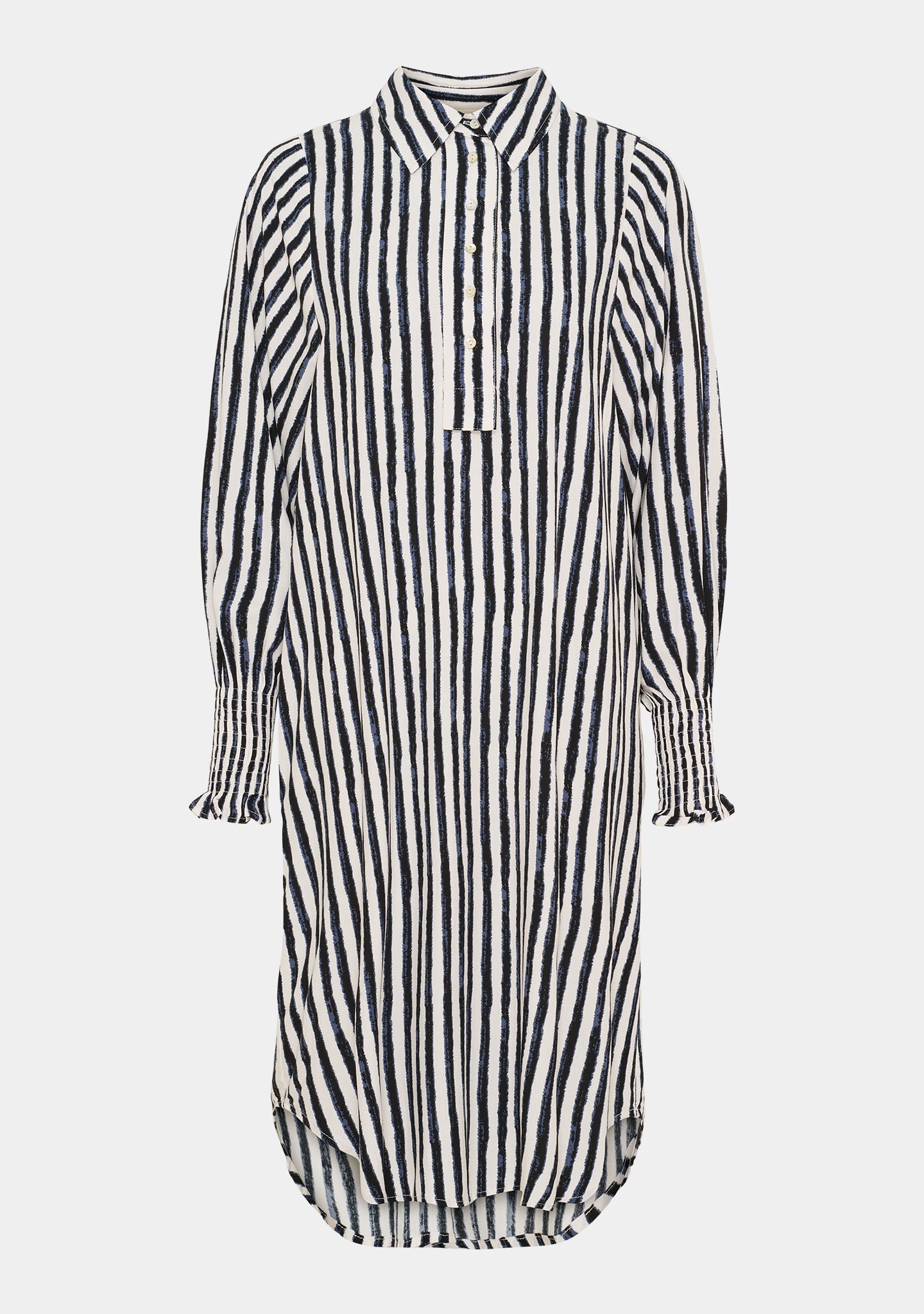 Das Asta Smock Dress ist ein lässiges und elegantes Hemdkleid, das Sie in Ihrer Herbstgarderobe nicht vermissen möchten. Mit seinem leichten grafischen Druck und femininen Details bringt es einen modernen, aber zeitlosen Look, der sowohl für den Alltag als auch für besondere Anlässe geeignet ist. Das Kleid besteht aus 100% LENZING™ ECOVERO™ Viskose - eine verantwortungsbewusste Wahl, die sich angenehm auf der Haut anfühlt und schön am Körper fällt.