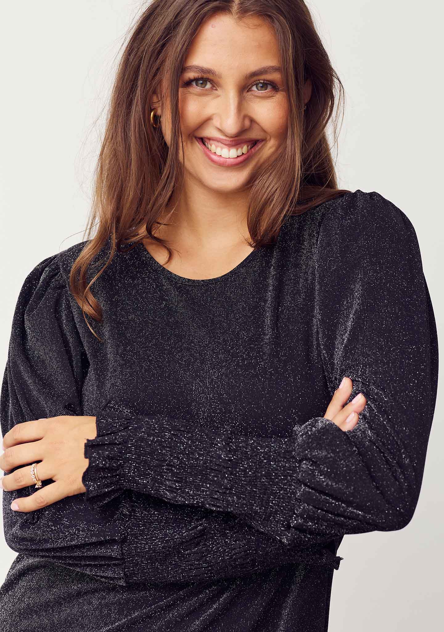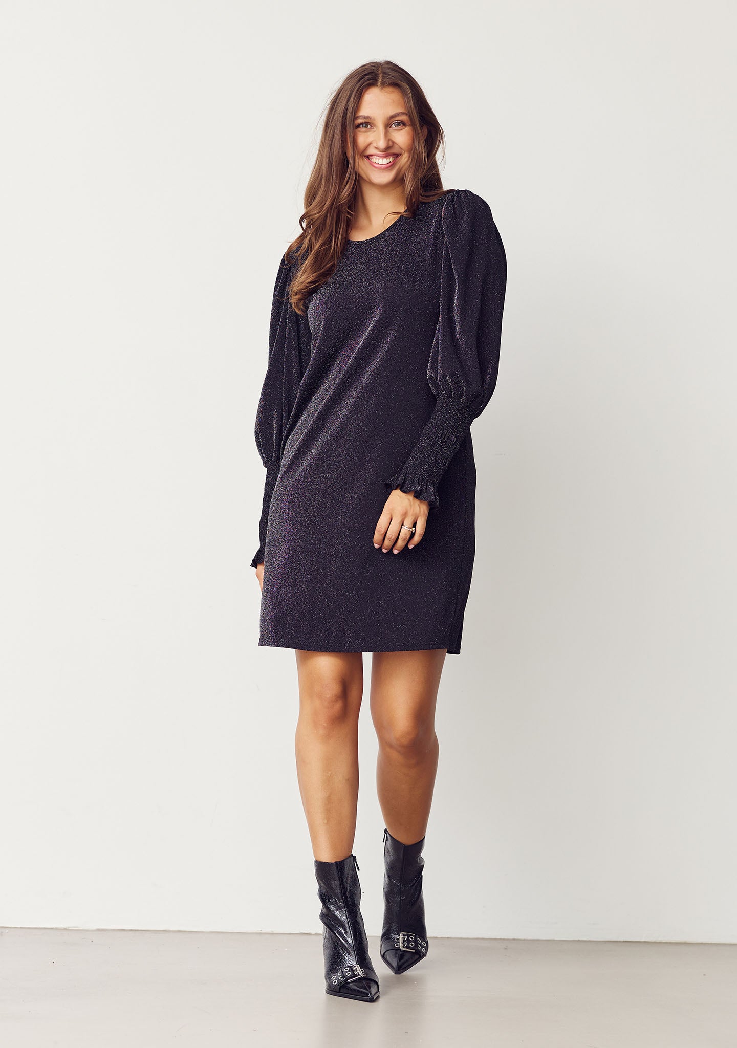 Das Barbel Dress ist das perfekte Kleid, wenn Sie sich wohl fühlen und dennoch ein wenig extra strahlen möchten. Das Kleid hat eine weiche, dehnbare Qualität mit eingewebtem Lurex, was einen funkelnden Effekt ohne Kompromisse bei Komfort bietet.