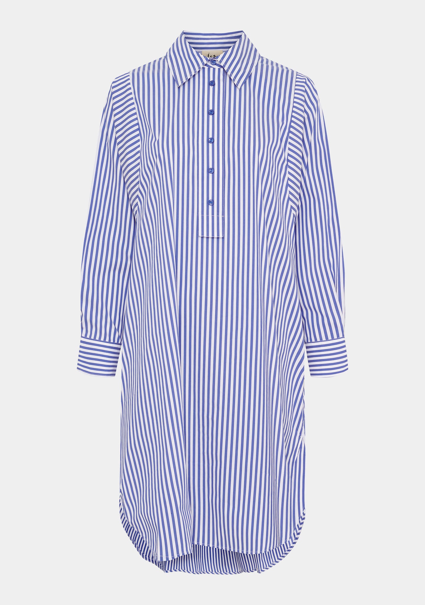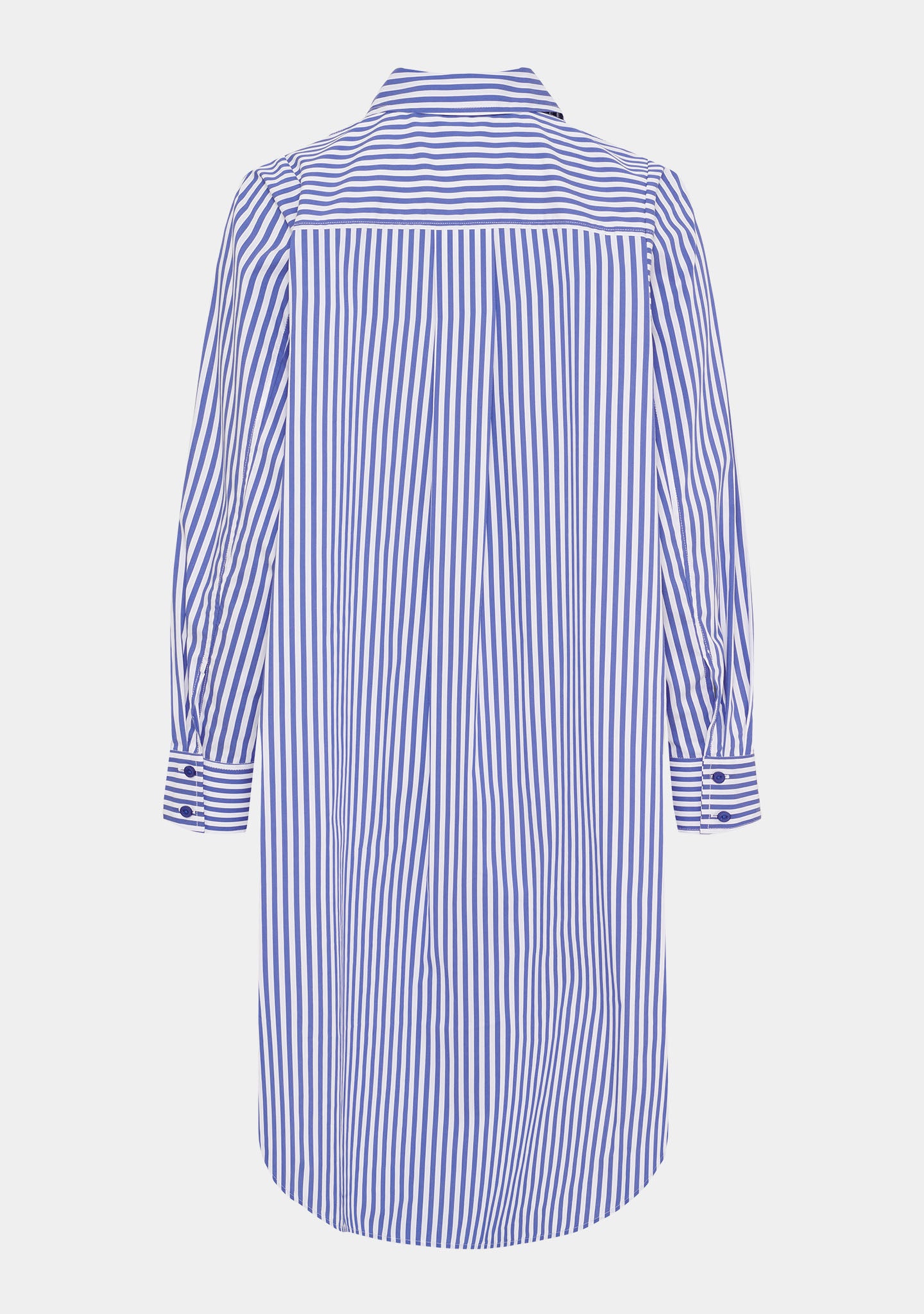 Das Sigga Striped Dress ist ein klassisches Hemdblusenkleid mit einem einfachen und entspannten Ausdruck, das sich immer wieder leicht tragen lässt. Es verfügt über einen klassischen Kragen und einen Knopfverschluss vorne unterhalb der Brust, der für ein helles und offenes Aussehen sorgt. Die langen, weiten Ärmel mit Manschetten unterstützen die lockere Passform und schaffen eine angenehme Silhouette.