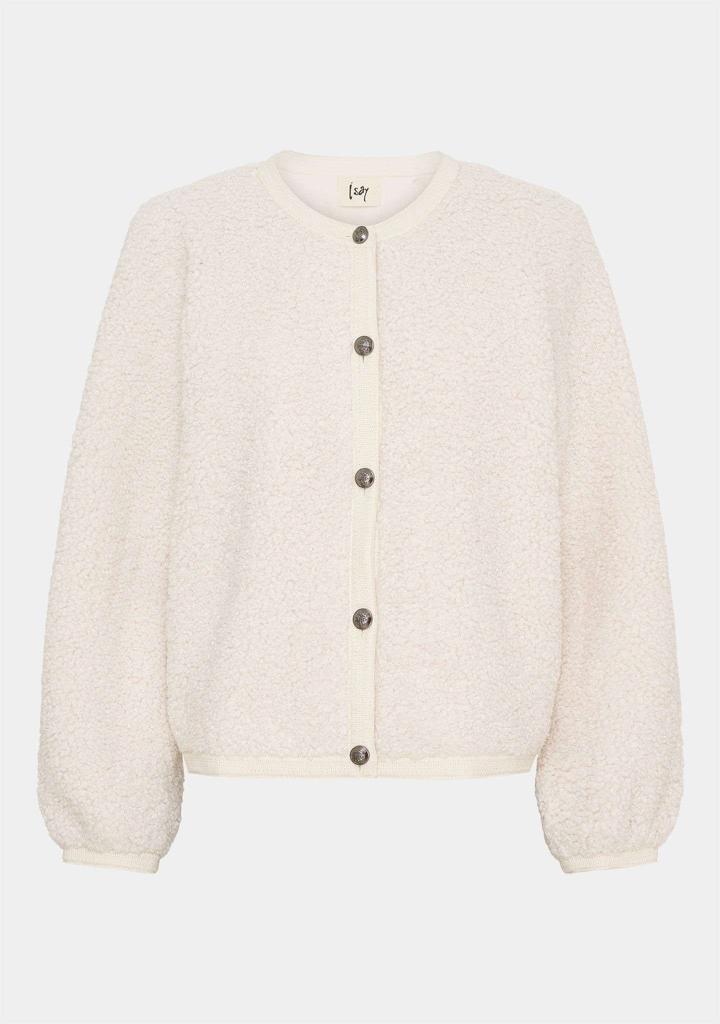 Die Leone Jacket ist eine kurze Jacke aus einer weichen Bouclé-Qualität, die einen exklusiven und modernen Look bietet. Die Jacke verfügt über einen runden Ausschnitt, einen durchgehenden Knopfverschluss vorne und eine lockere Passform. Ärmel und Saum sind mit einem gewebten Band veredelt, was einen eleganten und gut strukturierten Abschluss ergibt.