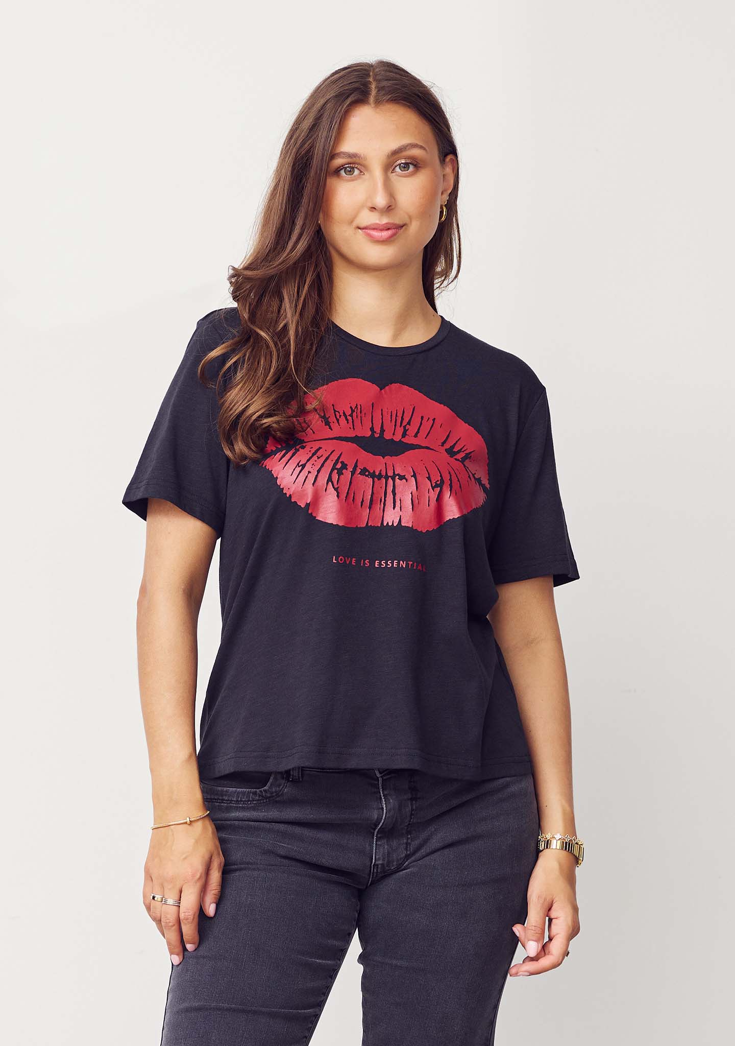 Das Kora Lip T-Shirt ist ein modernes Basic mit einem Twist. Das auffällige Lippenmuster sorgt für einen grafischen Ausdruck, während der runde Ausschnitt und die kurzen Ärmel das Design klassisch und einfach zu stylen halten.