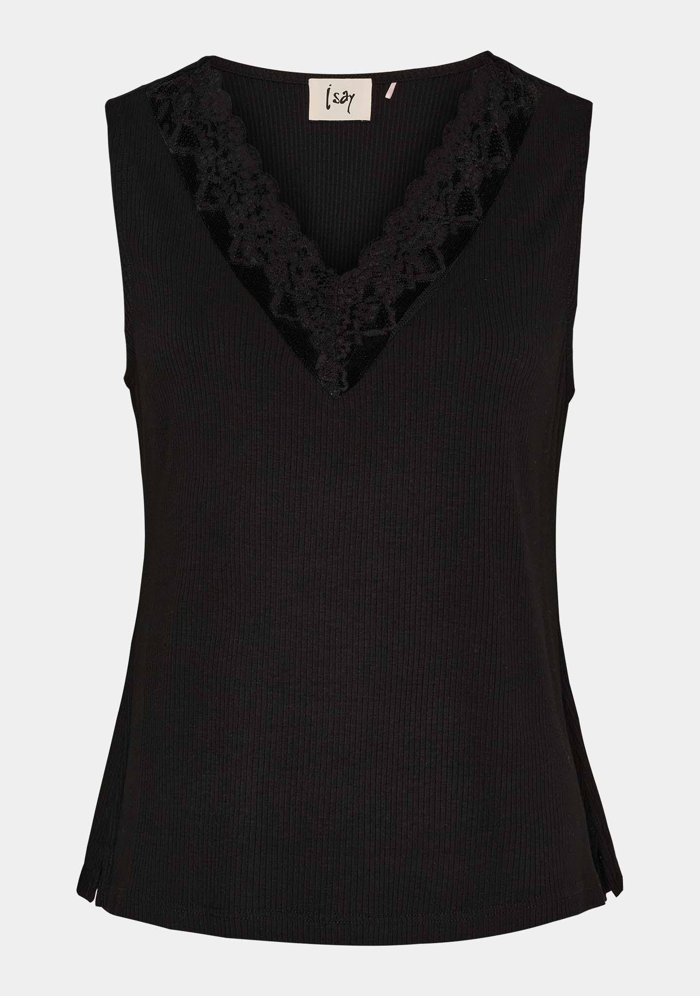 • Ärmelloses Top mit V-Ausschnitt und Spitzenbesatz
