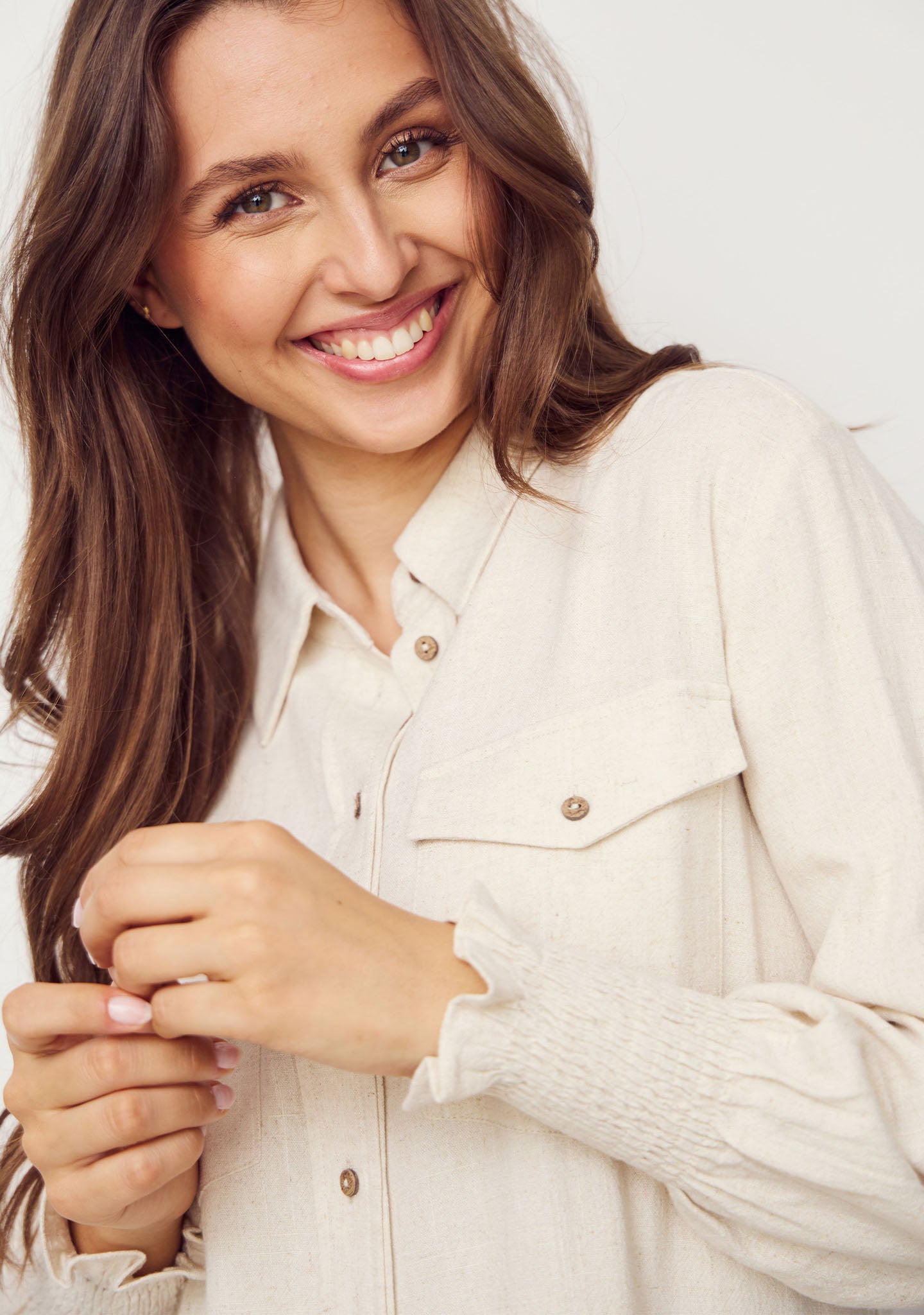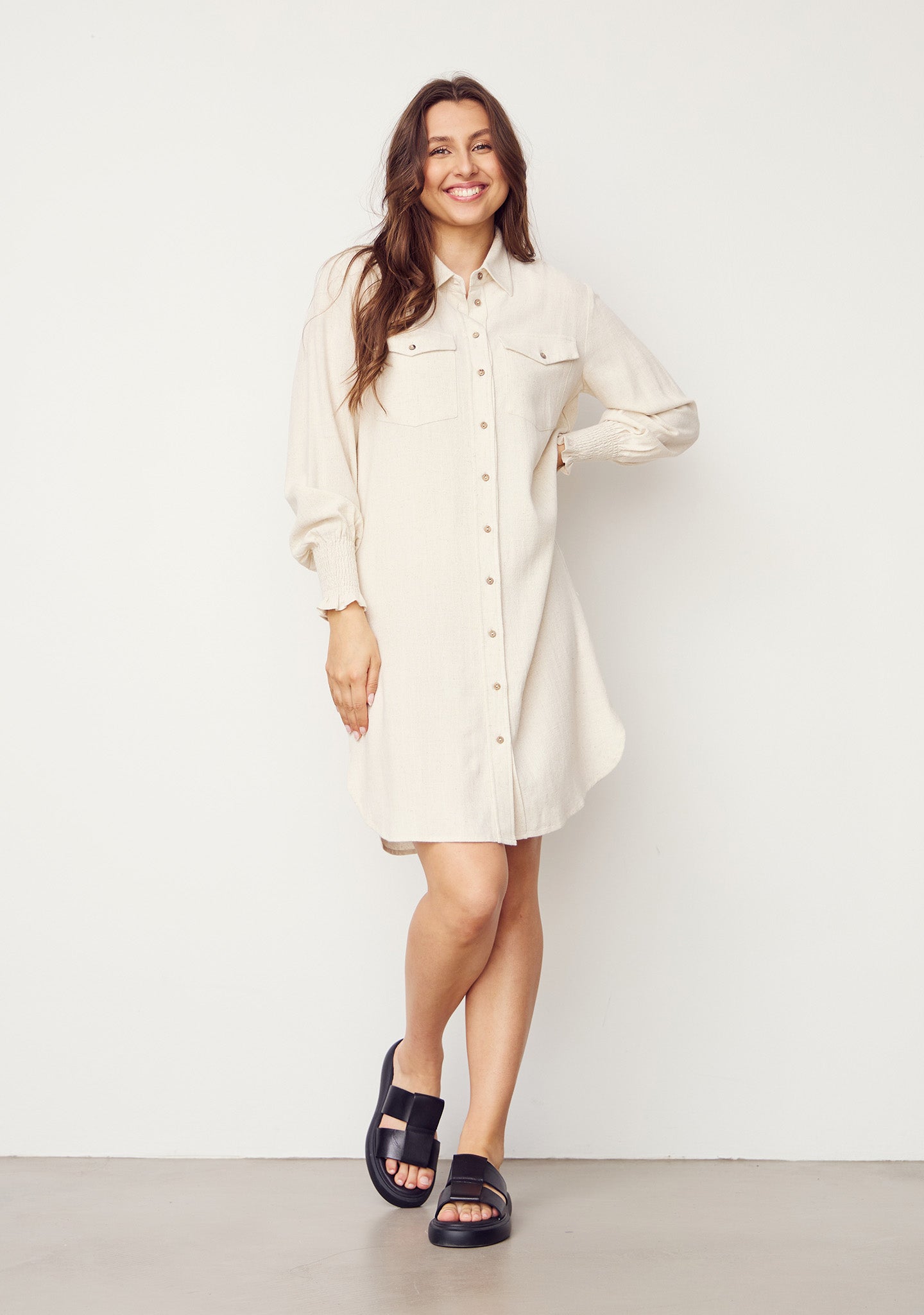 Die Pearl Tunika kombiniert Eleganz und Komfort in einer stilvollen Tunika, die auf unzählige Arten getragen werden kann. Die lange Silhouette verleiht einen raffinierten Look, während die feinen Smock-Details an den Ärmeln eine feminine Note verleihen. Mit ihren klassischen Brusttaschen und Knopfverschluss ist sie sowohl lässig als auch stilvoll und damit eine vielseitige Ergänzung für den Kleiderschrank.