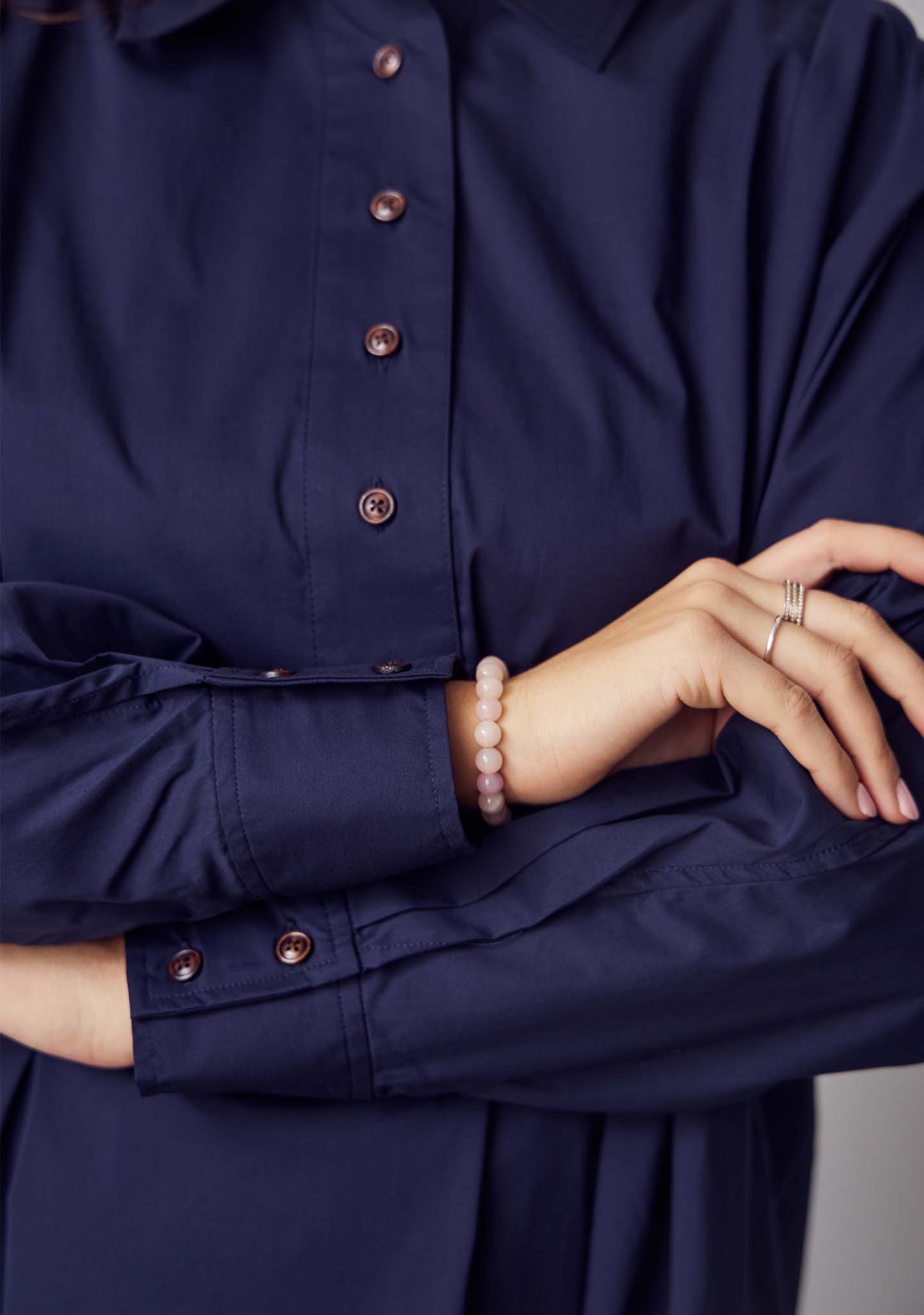 With our Sigga dress, you get a lovely shirt dress in a super trendy design. The shirt dress features long, wide sleeves with a collar and a button closure below the chest. The fit is relaxed in an oversized look with slits on both sides and patch pockets. Wear the shirt dress for everyday occasions with your favorite leggings or jeans, and for special occasions with bare legs and high heels.