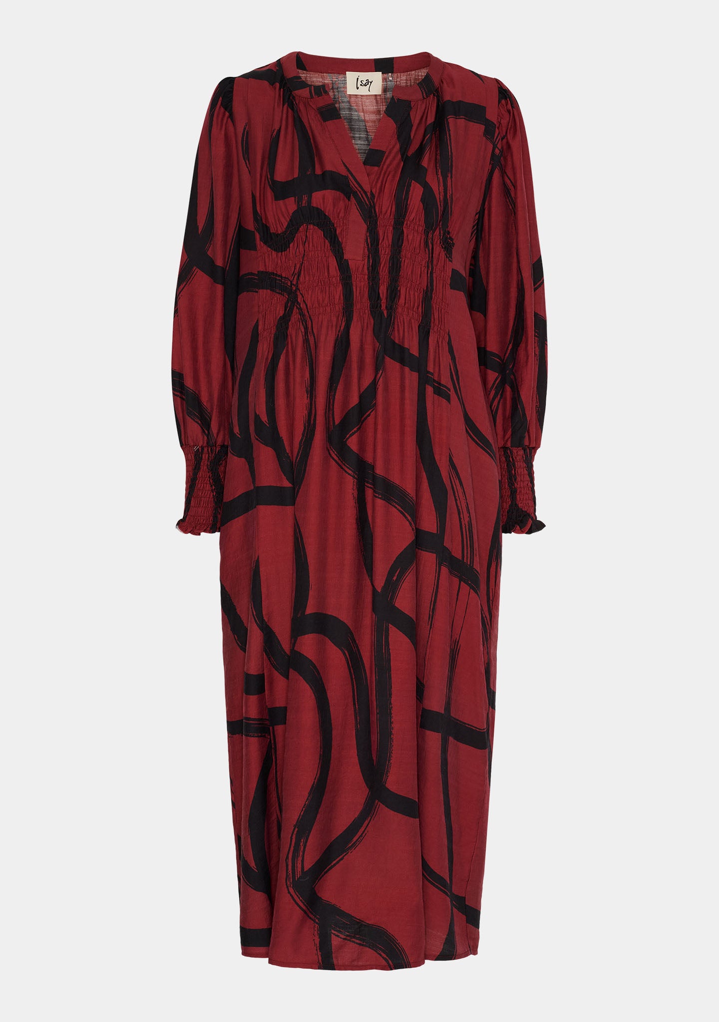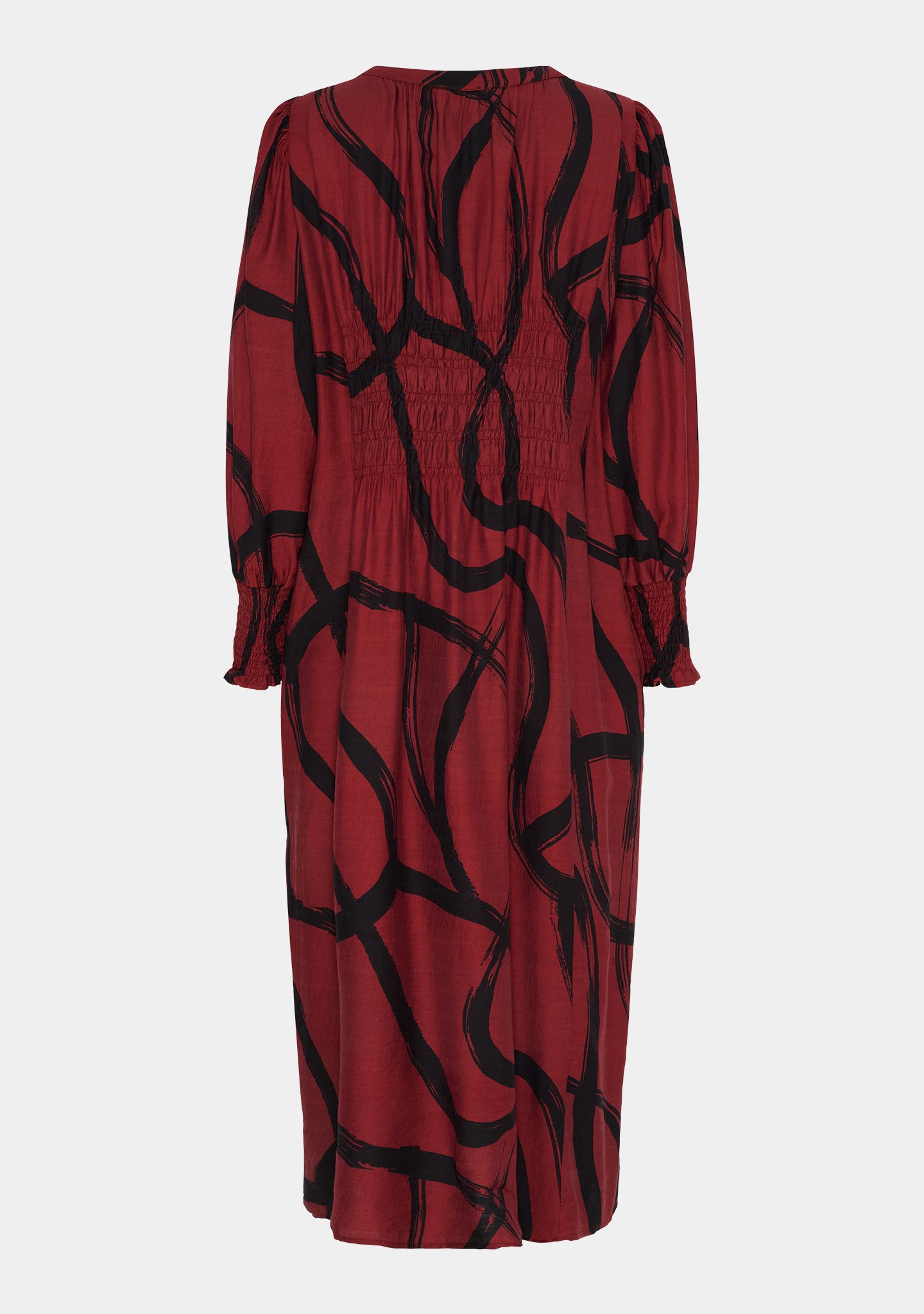 Die V-Ausschnitt Knopfleiste vorne verleiht einen klassischen, aber entspannten Look, während Smockdetails vorne und hinten Form und Flexibilität hinzufügen. Die Ärmel sind lang und mit elastischen Smockbündchen versehen. Die Passform ist locker und ermöglicht Bewegung – so können Sie sich gleichzeitig frei und gut gekleidet fühlen.