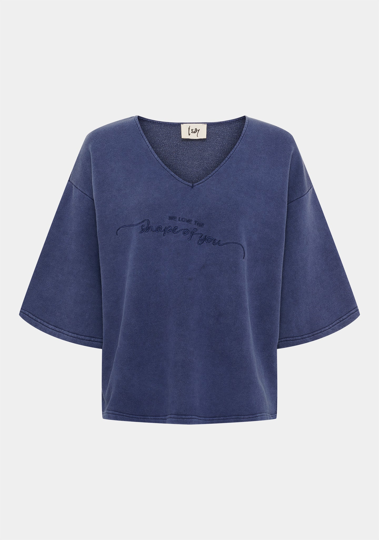 • Ton-in-Ton bestickter Text auf der Vorderseite